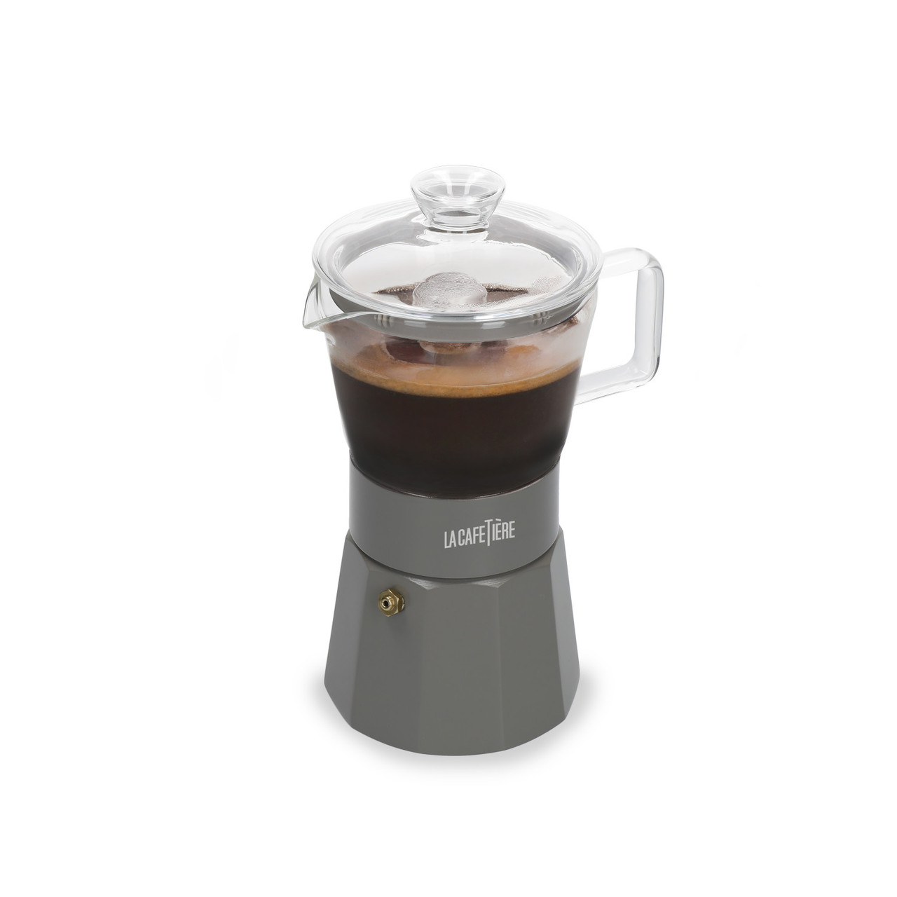 This 6 cup Verona stovetop espresso maker from La Cafeti?re revisits the classic Italian design - with a twist. By incorporating heat-resistant borosilicate glass in the top part of the pot, this clever innovation allows the user to watch the coffee bubble and brew! Made from durable stainless steel, the espresso maker is suitable for all heat sources including induction, traditional gas, electric and ceramic hobs.